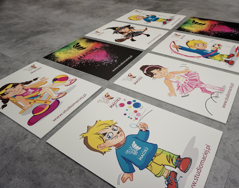 Opracowanie logotypów. Projekt i przygotowanie do druku: materiałów akcydensowych, niezliczoną ilość ulotek, plakatów, materiałów promocyjnych, produktów wizerunkowych i wystawienniczych. Przygotowanie projektów ubrań, gier i zabaw. Opracowanie wizerunków Macieja, Melodii, Pani od rytmiki.